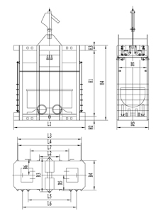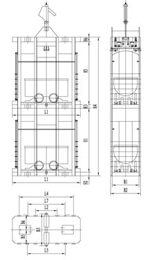 單繩罐籠由楔形連接裝置,抓捕器、罐體、罐內(nèi)阻車器、導(dǎo)向裝置組成,如用于上下人,則必須設(shè)置斷繩保險器(防墜器),抓捕器根據(jù)制動繩布置形式可分為I型(對稱)抓捕和II型(對角)抓捕形式。常用單繩罐籠及配套防墜器的具體型號參數(shù)見附表。