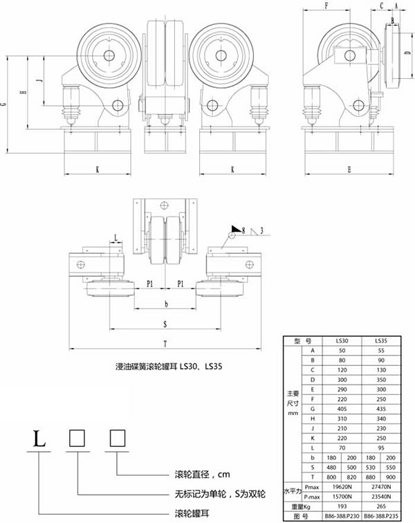 聚胺脂橡膠滾輪罐耳裝置(簡稱滾輪罐耳),是參考多年來各礦井使用滾輪罐耳的形式,廣泛吸取用戶的使用意見改進而成。可根據(jù)用戶的使用條件和要求,可采用橡膠緩沖、彈簧緩沖、碟簧緩沖、液壓緩沖、復合緩沖。其使用壽命長、安全可靠性高、維護方便等特點。